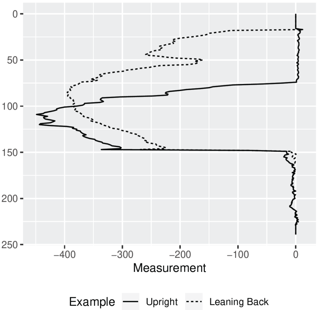 图 8. 从自上而下的红外摄像机采集深度测量值,用户坐直并向后倾斜