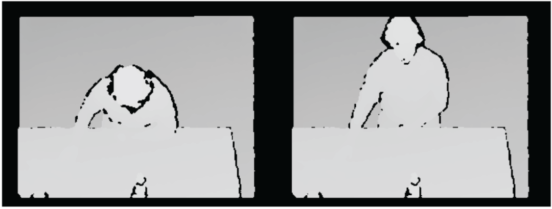 图 7. 图像来自于自上而下的红外摄像机。左图:用户端坐。右:用户向后倾斜