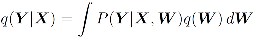 贝叶斯深度神经网络将概率分布置于网络中的每个权重上,因而使网络具有随机性,能够捕捉不确定性。利用后验概率 q(W)的一个 Dropout 近似,得到预测分布如下: