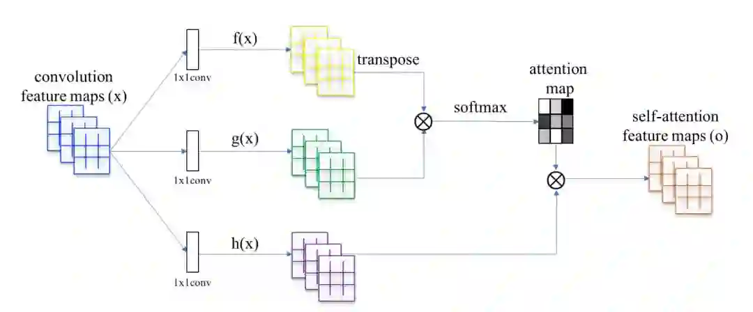 可以把 self attention 看成是 feature map 和它自身的转置相乘,让任意两个位置的像素直接发生关系,这样就可以学习到任意两个像素之间的依赖关系,从而得到全局特征了。看论文时会被它复杂的符号迷惑,但是一看代码就发现其实是很 naive 的操作。