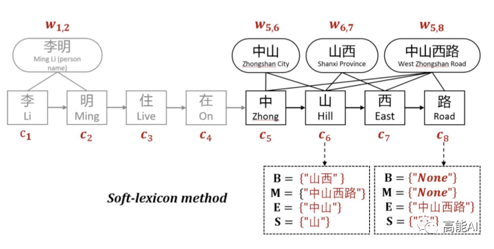为了解决Softword和ExtendSoftword存在的问题,Soft-lexicon对当前字符,依次获取BMES对应所有词汇集合,然后再进行编码表示。