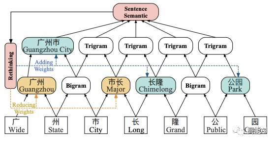 Lexicon-Based CNNs:采取CNN对字符特征进行编码,感受野大小为2提取bi-gram特征,堆叠多层获得multi-gram信息;同时采取注意力机制融入词汇信息;
