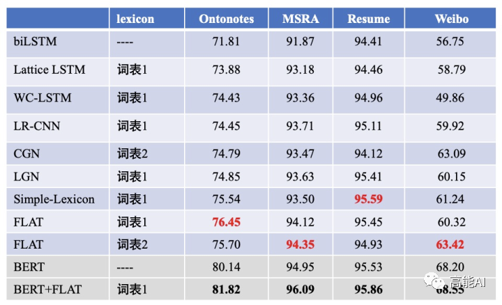 上图可以发现:总的来看,ACL2020中的FLAT和Simple-Lexicon效果最佳。具体地说:
