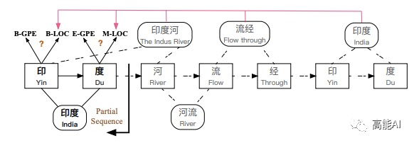 本篇论文与LR-CNN出发点类似,Lattice LSTM这种RNN结构仅仅依靠前一步的信息输入,而不是利用全局信息,如上图所示:字符 [流]可以匹配到词汇 [河流] 和 [流经]两个词汇信息,但Lattice LSTM却只能利用 [河流] ;字符 [度]只能看到前序信息,不能充分利用 [印度河] 信息,从而造成标注冲突问题。