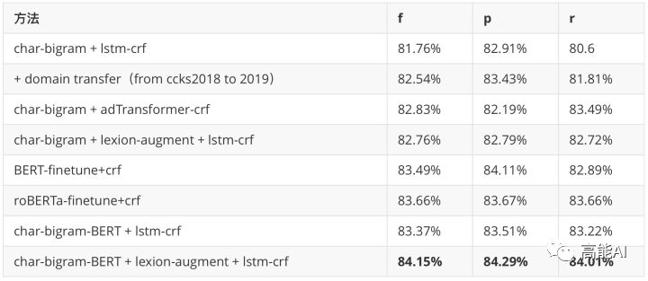 最后,我们来看一下,上述各种「词汇增强」方法在中文NER任务上的性能: