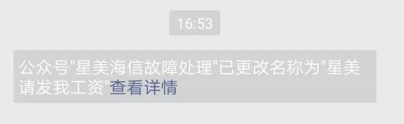 没过几分钟,又一个群友发布了一条“讨薪”链接。一个名为“星美海信故障处理”的微信公号,以消息的方式,向粉丝推送了一条信息:“星美请发我工资,谢谢。”这条信息再次迅速地燃起群友的情绪,纷纷前去留言。