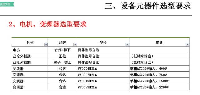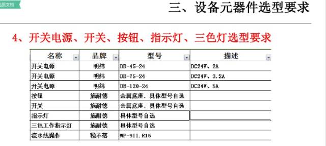 4、主要部件选型:在可行性方案经由客户确认后,开始进行自动化部品选型;(一般在做可行性方案时,也需要进行初步的选型动作)