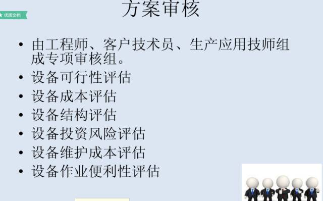 3、方案确认:根据上述两个基本情况,结合可供选择的条件,提出初步可行性方案,供团队集体讨论后,交付给客户确认;(一般这会有几个来回后才能初步定下来)