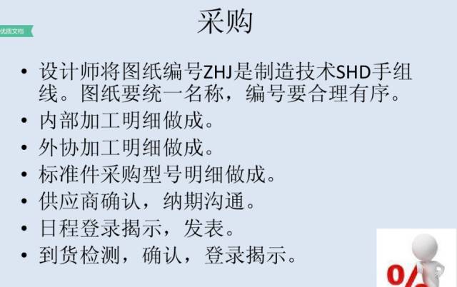 采用图文并茂的纸档(或电子档)的形式,对制造、装配中所有的具体动作、使用的工具、刀具和工装夹具、需要加工、装配的原材料和零部件(含标准件)、以及每一个工序的具体要求,和先后加工顺序做出明确无误的规定。并采用‘防呆’的描述方式和相应的措施,使普通员工能使用‘按图索骥’的简单方法,对照SOP进行和完成加工、装配的工作任务。