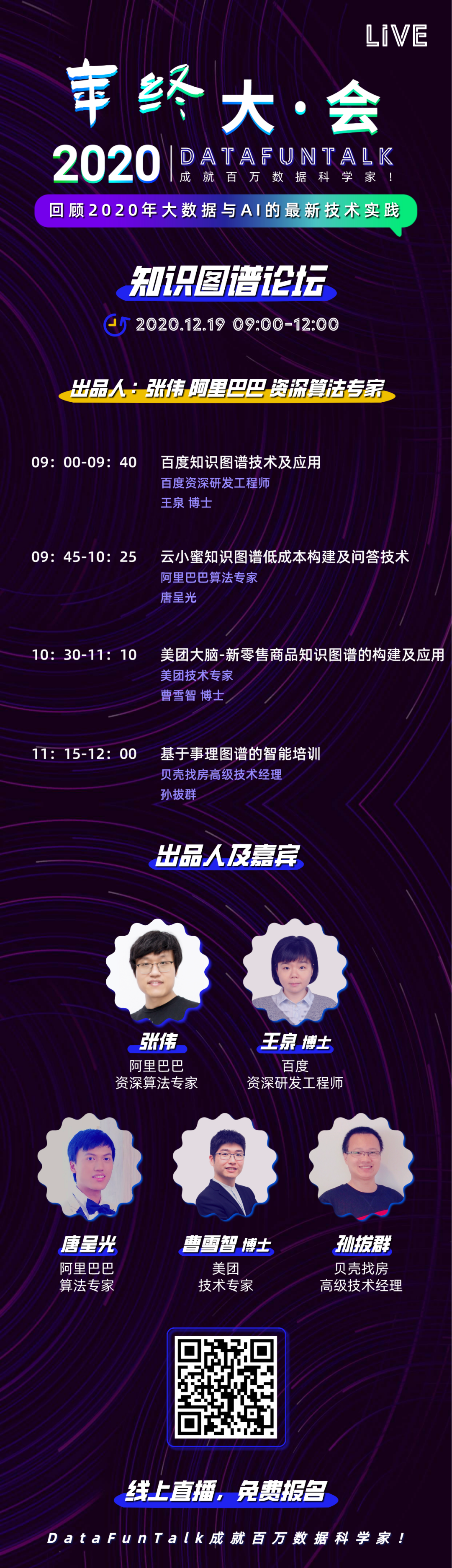 演讲者简介:曹雪智博士于2018年7月加入美团点评,担任AI平台NLP中心的研究员。目前主要负责美团大脑中商品知识图谱的构建与应用,实现对商品相关内容的更加立体化、智能化、常识化的理解,赋能美团点评的外卖、商超、生鲜等多个业务线。在此之前,曹雪智博士毕业于上海交通大学,在个性化推荐系统、在线社交网络等方向上开展研究工作,并在相关领域的顶级会议和期刊上以第一作者发表10余篇论文,如WWW, SIGIR, AAAI, CIKM, RecSys等。除此之外,曹雪智博士也曾多次在ACM-ICPC竞赛中取得金牌,并在数据挖掘竞赛KDD Cup中夺得冠军。