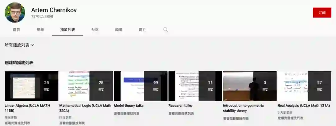 目前,Artem Chernikov 也在自己的 Youtube 频道上传了其他课程的视频。