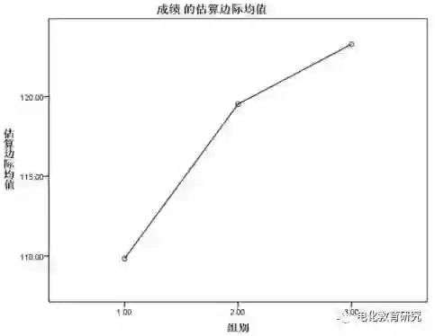 以学习行为水平高中低分组(分别对应图1中组别1、2、3)为自变量,成绩为因变量,进行方差分析。结果表明:三组学习者在成绩上存在显著性差异(F=88.046,P=0.000),表现为低分组成绩显著低于中分组。图1可以清晰地看出这一趋势,随着学习行为水平的提升,成绩逐步上升,随着组别的增加,递增幅度呈下降态势。
