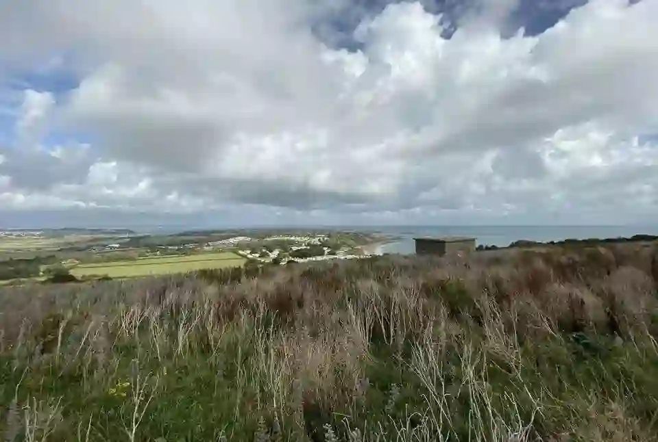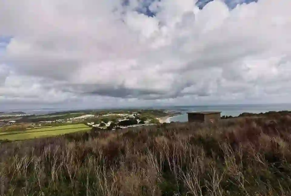 两张看起来完全不同的图片。在喧嚣的山顶上使用广角镜头拍摄,首先反映了两者的视角差异,iPhone 可以拍摄更多的场景,并且图像更鲜艳,曝光更好,近景中枯黄和新生长的野草之间对比强烈,远处绿色的树木清晰可见,整体场景色调统一,层次分明。
