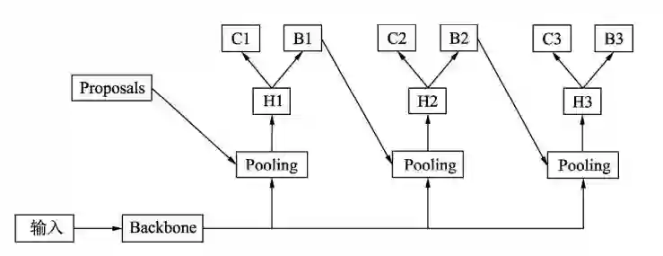 通过级联多个检测器来不断优化结果,每个检测器都基于不同的IoU阈值来界定正负样本,前一个检测器的输出作为后一个检测器的输入,并且检测器越靠后,IoU的阈值越高。