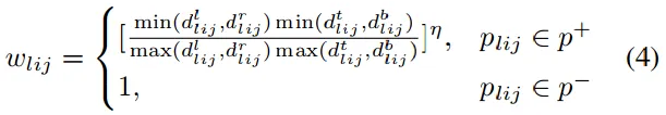 范围为 0~1,公式保证了目标边界处的 points 权重为 0,目标中心处的 ponit 权重为 1。