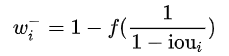 将目标实际位置与 anchor point(也就是 center)的距离作为一个 anchor 的惩罚权重,加入到损失函数的计算中(仅针对正样本,负样本不做改动)。公式如下: