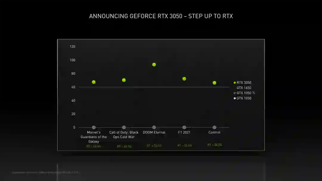 英伟达表示,在1080p分辨率下,RTX 3050 可以轻松60帧运行目前的3A游戏大作 。不过可能需要进行一些画面设置并关闭光追特效。