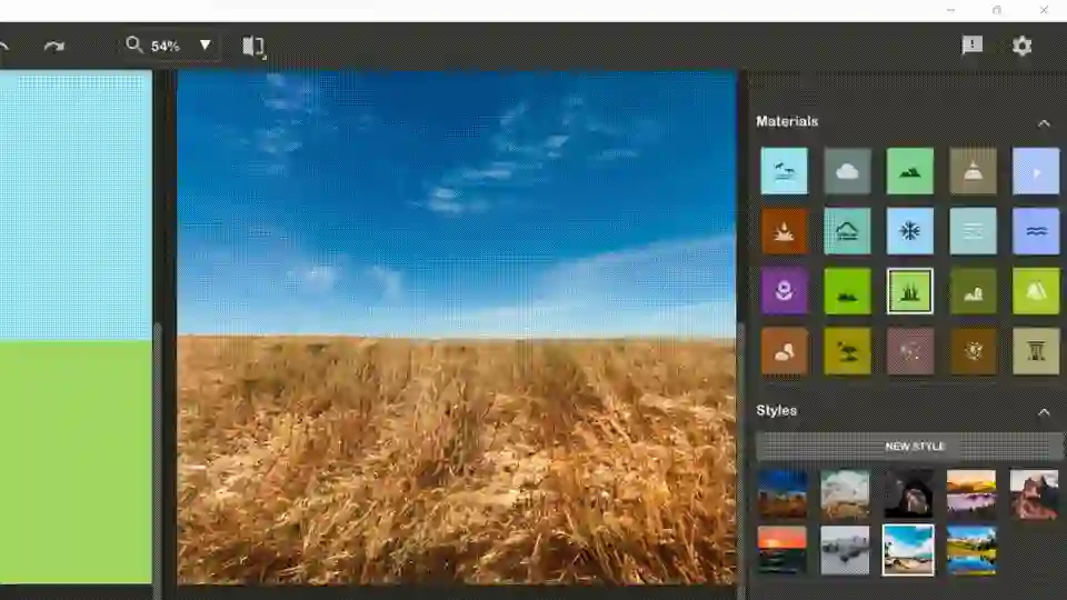 这些新材料可以通过九种预设风格进一步定制。当然,艺术家也可以选择上传自己的图像,创造出独一无二的风景。