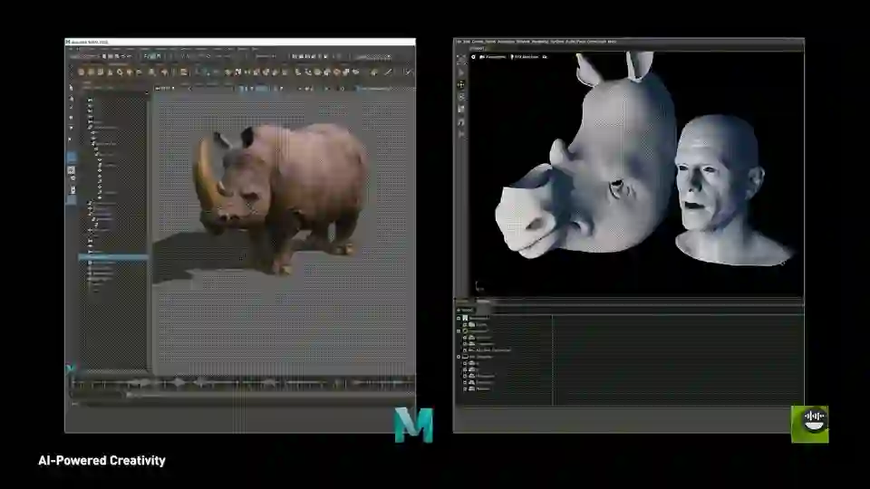 Audio2Face是一个革命性的人工智能应用程序,只需一个音轨就能立即为3D脸部制作动画。