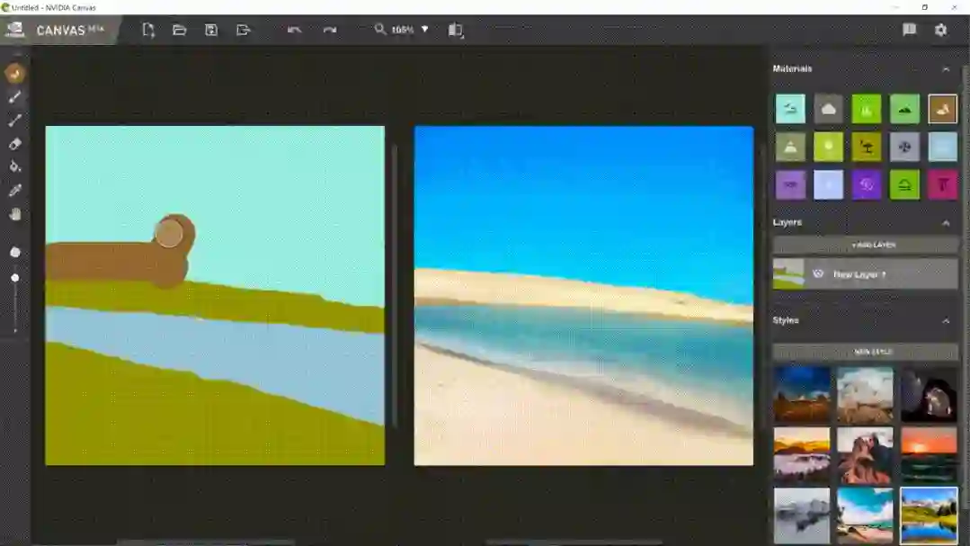 初代Canvas使用由500万张风景照片组成的生成对抗网络GauGAN。