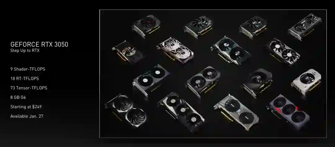 Nvidia GeForce RTX 3050 的售价为 249 美元,预计将于 1 月 27 日发售。