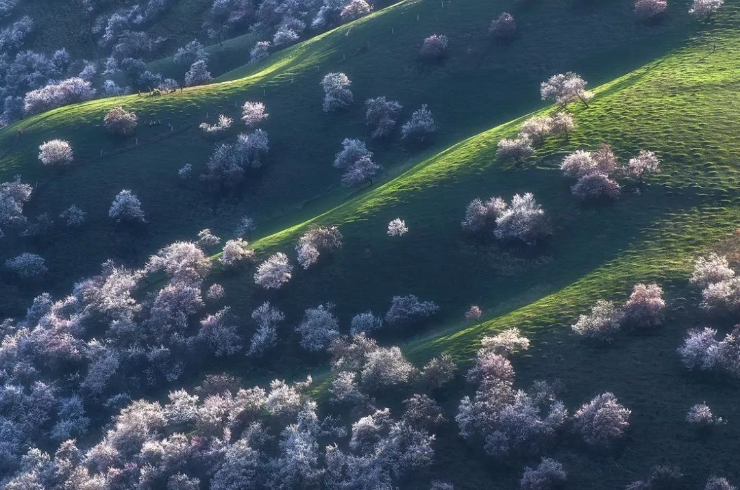 攻略:在以巩留,库尔德宁,霍城为核心的伊犁河谷,野苹果,野核桃等野果花在四月陆续开放。吐尔根的野杏花大气磅礴,而伊犁河谷的野果花则更为秀美。野果花的花期比吐尔根的杏花花期要晚一些,因地势的不同,会此消彼长的一直开到4月下旬。由于虫害以及天气和路途等不确定因素,这里的拍摄难度给的是四星半。