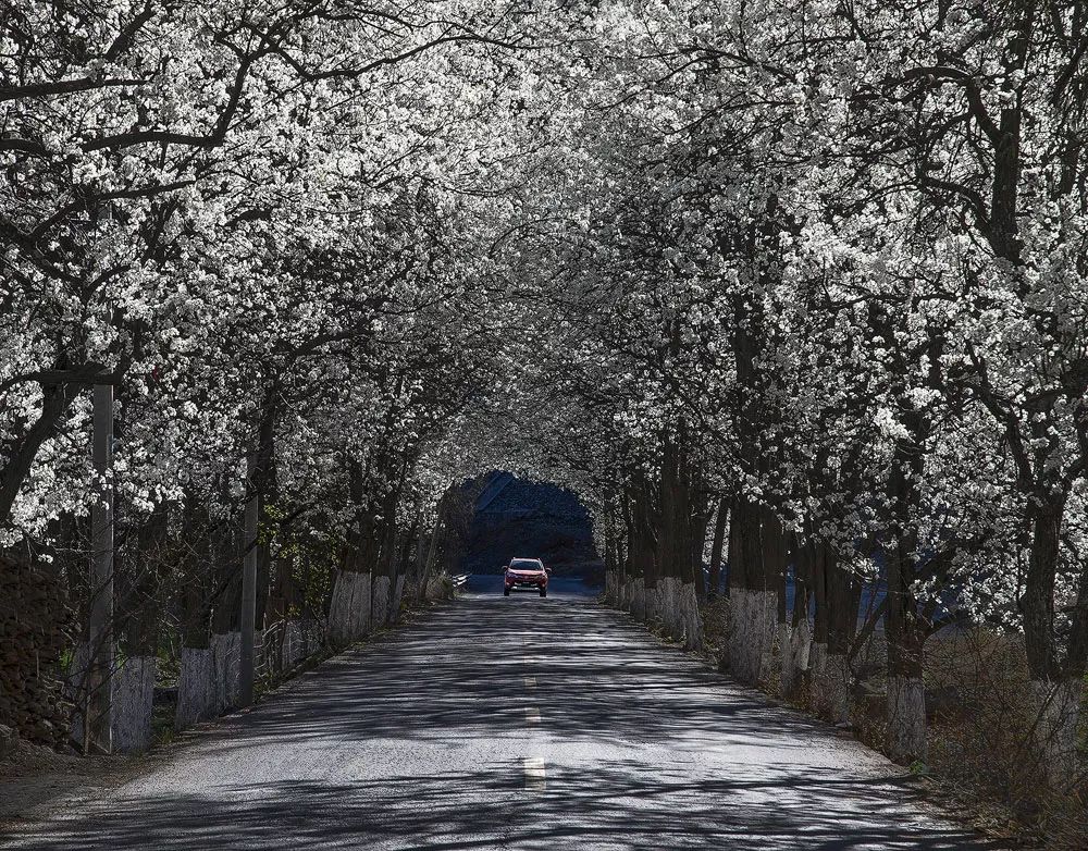 攻略:当雪域高原还在冬的怀抱里酣睡时,金川河谷的万亩梨花竞相绽放,像一条洁白的哈达,把每一寸土地都装点得雍容华贵。金川是中国有名的雪梨之乡,每年3月中旬,梨花开始盛放,花期有两周之久,但遇风雨随即凋零。梨花主要分布在金川县的沙耳乡,咯耳乡。不建议在金川县城居住,建议提早至少两周预定乡里的农家乐。拍摄的主要机位在沙耳乡半山腰的神仙包观景台,可以自驾沿盘山公路到达。这个3星的拍摄难度全是由于金川县路途遥远,外地游客到达不便。