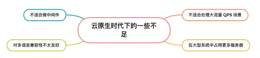 其次,Java 语言需要更多的资源。一个架构的打造如果不考虑成本,很多问题都很好解决,但在云原生时代下,所有的资源计算变得越来越细、越来越颗粒化。Java 在运作时需要消耗大量的资源,由于 Java 分量重和需要重启的基础特性,因此在高 QPS 或者业务连续性要求较高的场景下,该语言会更容易出现问题。