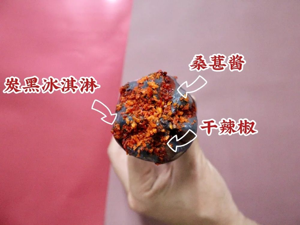 一向清新甜美味的可爱多今年突然向黑暗料理界进发了。货真价实的干辣椒叠加桑葚味酸甜酱再加炭黑冰淇淋,争议度满分。