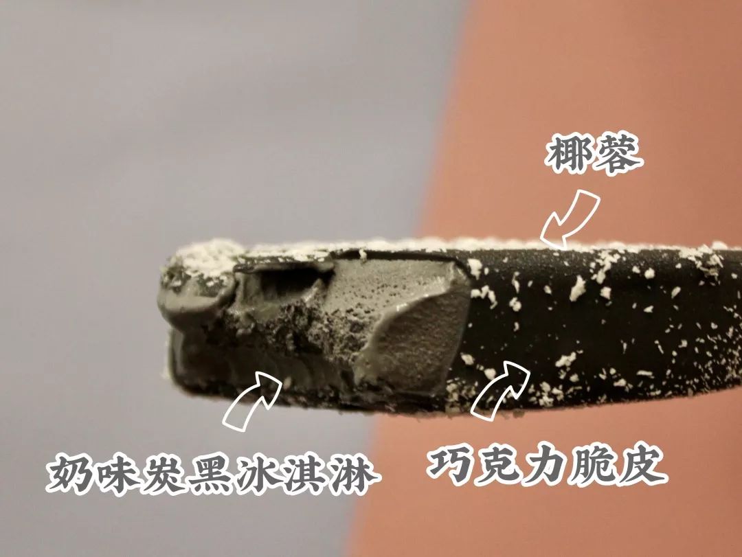 巧克力脆皮很薄,冰淇淋椰奶的香气很足。是一款中规中矩的椰子灰。需要注意的是里面的炭黑冰淇淋不是灰色,是真的很黑。稍微不注意嘴唇、牙齿、舌头都是黑色的。后续清理工作相当麻烦。介意的朋友建议还是找个没人的地方吃。