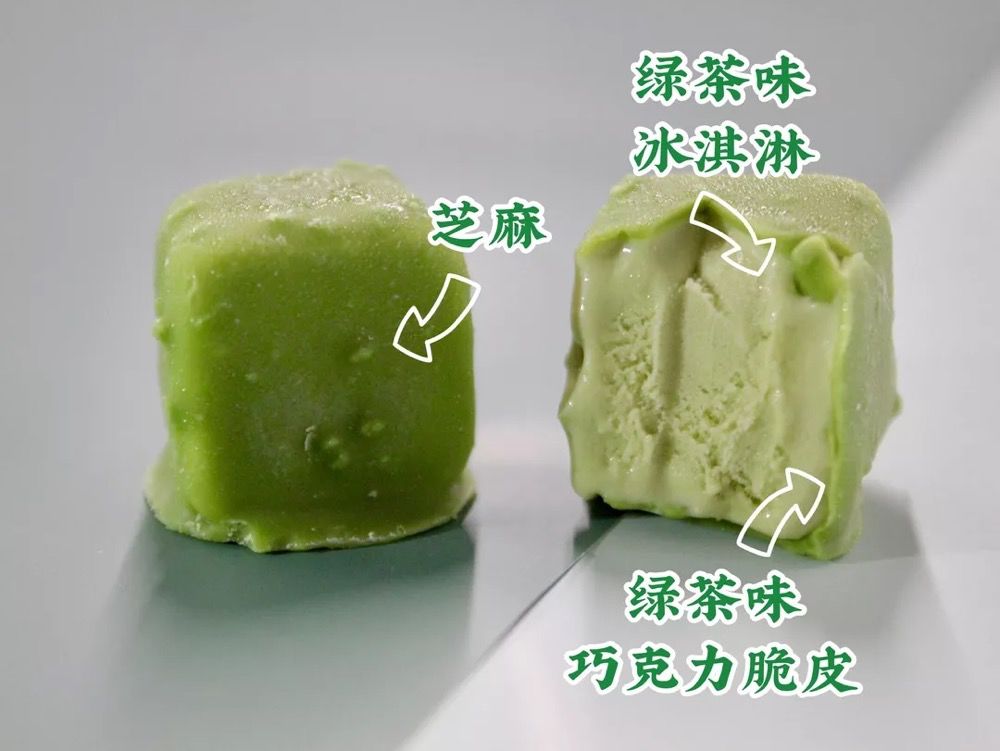 冰淇淋虽然小,但是味道绝不含糊。脆皮又薄又脆,芝麻也增添了香味。冰淇淋的茶香味非常足,完胜市面上很多抹茶冰淇淋产品。不过别看它个头小,能量可不低,记得及时放手。