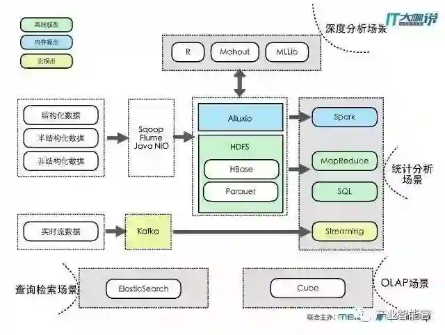 基于数据源的特点、分类,采集的方式,以及存储的选型,到数据分析和处理的分类,可得出一个相对总体的大数据平台架构。