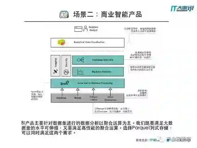 聚合运算把数据源采集存储的时候,是基于列的运算,而传统数据库是行式存储。行式存储针对于列的运算需要全表才能拿到,这时选择用parquet。因为parquet是以列式方式做存储,所以做统计分析很快。但parquet执行查询会很慢,没有优势。