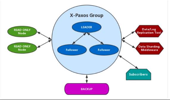 X-Cluster 的每个实例都是一个单进程的系统,X-Paxos 被深度整合到了数据库内核之中,替换了原有的复制模块。集群节点之间的增量数据同步完全 是通过 X-Paxos 来自驱动,如何复制,从哪个点回放不再需要运维人员或者外部工具来介入。 X-Cluster 利用 MySQL 的 Binlog 进 行深度改造和定制来作为 X-Paxos 的 Consensus 日志,实现了一系列的 X-Paxos 日志接口,赋予 X-Paxos 直接操纵 MySQL 日志的能力。