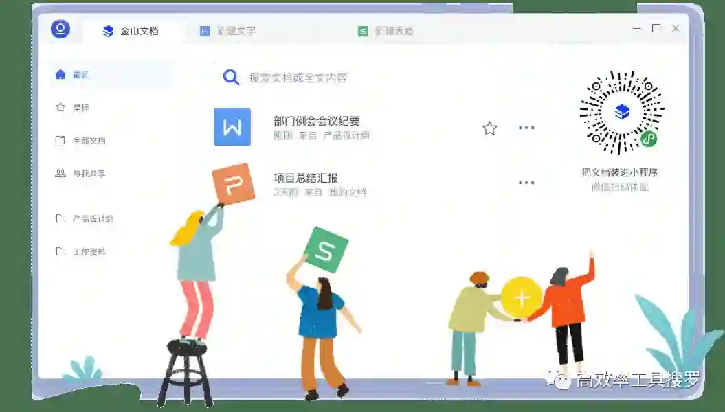 WPS 2019 是最新版的WPS,它可以创建文字,表格,便签,流程图功能,把幻灯片功能给去掉了。