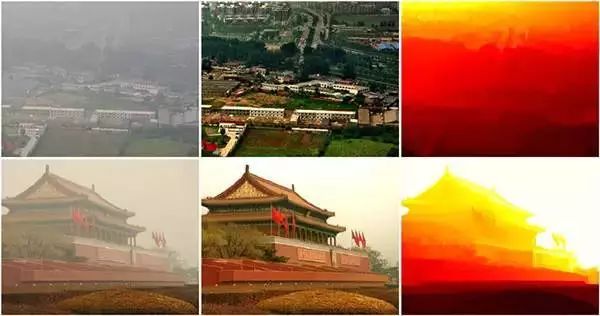 他在2009年获“CVPR最佳论文奖”的那篇论文,研究的正是图像的去雾技术,它可以还原图像的颜色和能见度,同时也能利用雾的浓度来估计物体的距离,这些在计算机视觉上都有重要应用(例如三维重建,物体识别)。