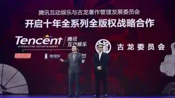 还值得关注的是,程武今日代表腾讯互动娱乐宣布与古龙著作管理发展委员会,达成古龙作品十年全系列、全版权的战略合作。这意味着腾讯影业、腾讯动漫、腾讯游戏在未来 10 年可以对古龙作品进行全产业链开发。