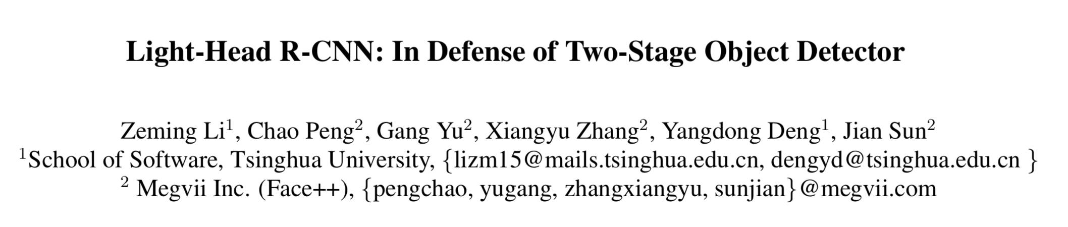 论文:Light-Head R-CNN: In Defense of Two-Stage Object Detector