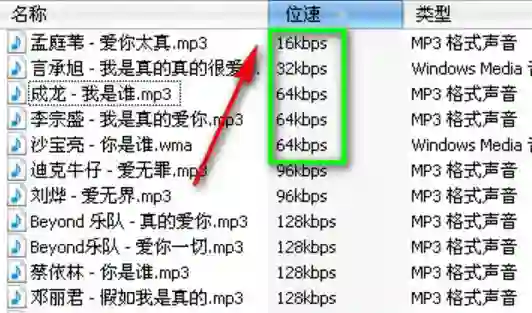 如果拿回去塞进电脑仔细看,躺着的大多是有损压缩格式 .mp3 文件,而且比特率还低得一匹。。。