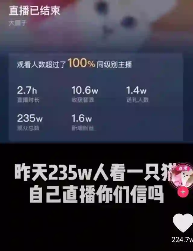 和“云蹦迪”一样,“云睡觉”也在一夜间风靡,甚至有博主做起了猫睡觉的直播:不到三小时的时间里,235万人观看,猫为博主挣到了价值1万元的打赏。