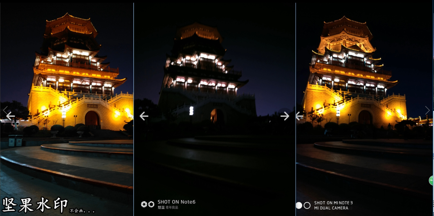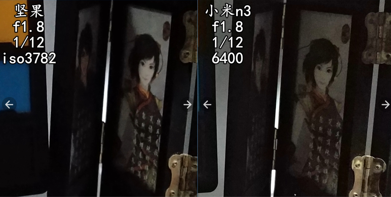暗光条件下,坚果已经差成了锤子。字已经被涂抹的变形了。魅蓝的噪点也过于严重,好在没怎么涂抹。两个都已经是自动快门的极限。