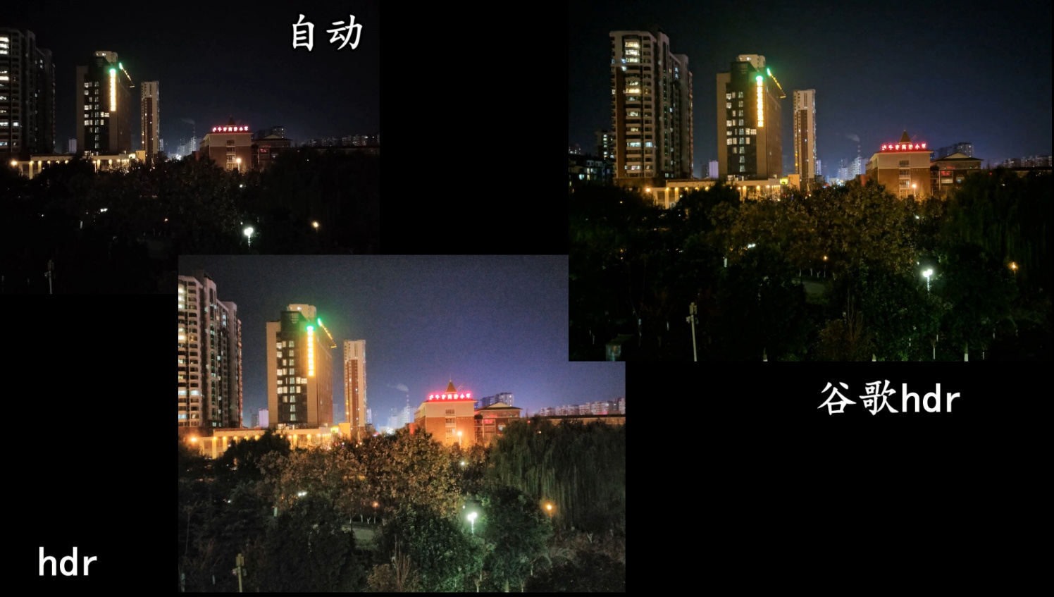接着我们来看夜间宽容度。坚果的 HDR 颜色失真噪点恐怖,让我回忆起被努比亚 Z9 支配的恐惧。没想到活到 2017 年还能见到这效果。谷歌 HDR 就发挥了奇效,明暗控制的还挺不错的。魅蓝 Note 6 和小米 Note 3 的水平也都不咋地,魅蓝满世界噪点,小米明暗控制的还能看。再看看锤子,我的妈呀,过过过。