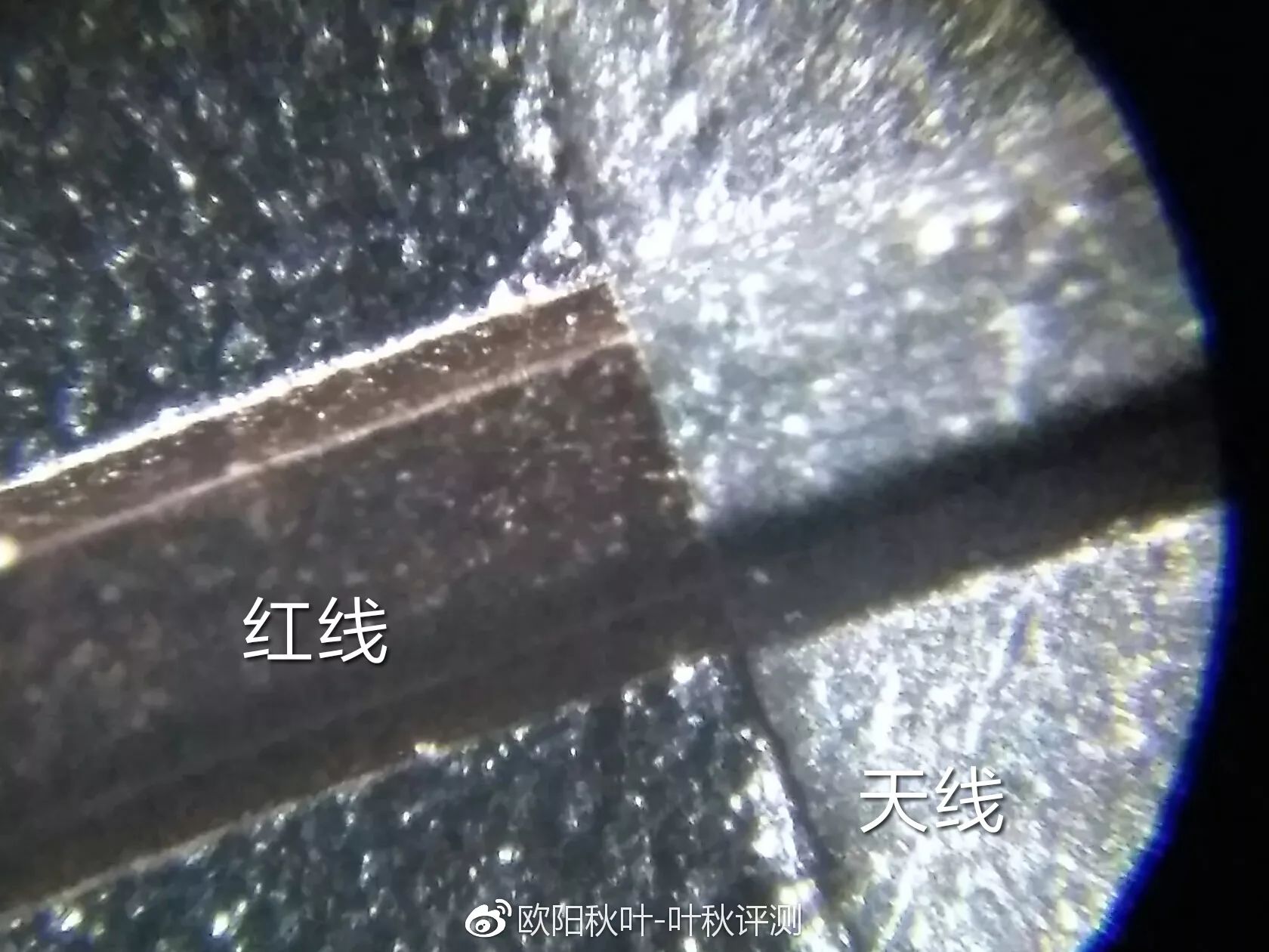 另外这次细红线有点粗,已经是粗红渠了。很多人第一眼看见会认为金属中框能打开成两片,不够精致。副作用就是容易藏污纳垢。这个直角的沟槽容易刮脏东西进去。天线处也做了一样的挖槽衔接,一体性还不错。卡槽稍微细了一些,不过衔接也很好。千万小心不要给掰断了。