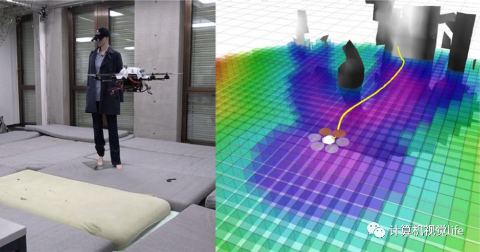 这篇论文主要做的问题是机器人路径规划需要的建图:是用 Euclidean Signed Distance Fields (ESDFs) 而非 Octomap(路径规划常用地图)来建立四轴飞行器优化路径需要的地图;他们的主要贡献是提出方法使得在飞行器上基于CPU能实时地完成从建立的TSDF图中提取ESDF并完成路径规划。