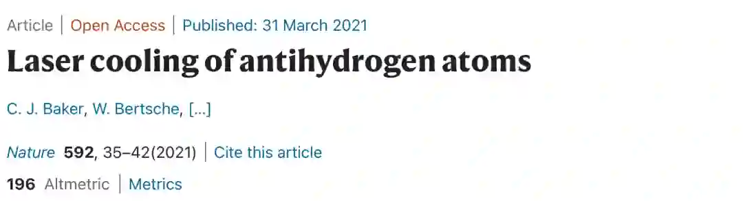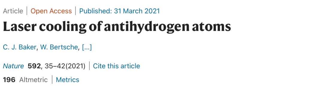 他们的研究成果于3月31日以「激光冷却反氢原子」(Laser cooling of antihydrogen atoms)为题发表在《自然》(Nature)杂志上,并登上了杂志封面。