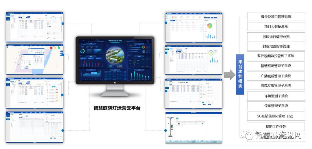 终端硬件(含监控、照明、屏幕、广播、传感器、5G等搭载硬件等)特点及区域应用需求,该运营管理云平台能实现对示范路、社区、公园、产业园区、学校、场区