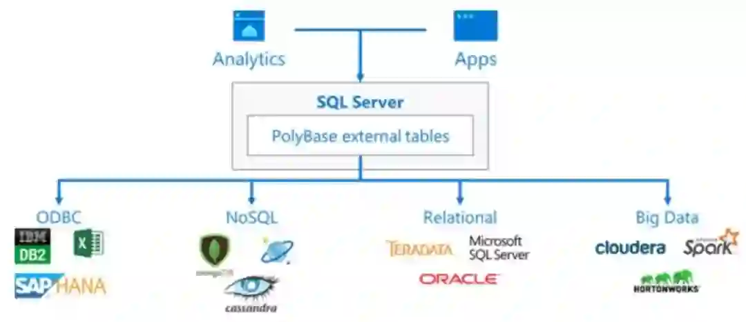 在 SQL Server 2019 版本中,微软将数据虚拟化作为产品核心概念和主要建设目标提出,并在功能层面通过内置的 PolyBase 技术进行了关键支撑和加强。PolyBase 其实并非一个新面孔,它最早出现于 SQL Server 2012 Parallel Data Warehouse 中,服务于这个软硬一体化的分布式 MPP 数据库版本。PolyBase 组件在功能上赋予了数据库层面定义指向 Hadoop/HDFS 数据的外部表的能力,成为帮助打通关系数据库与 Hadoop 大数据生态系统的重要桥梁。在 SQL Server 2016 中 PolyBase 则真正变得成熟并且广为人知,正式出现在了标准 SQL Server 中,大大地拓展了受众。
