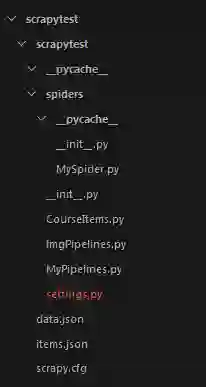 scrapytest/: 该项目的python模块。之后您将在此加入代码。