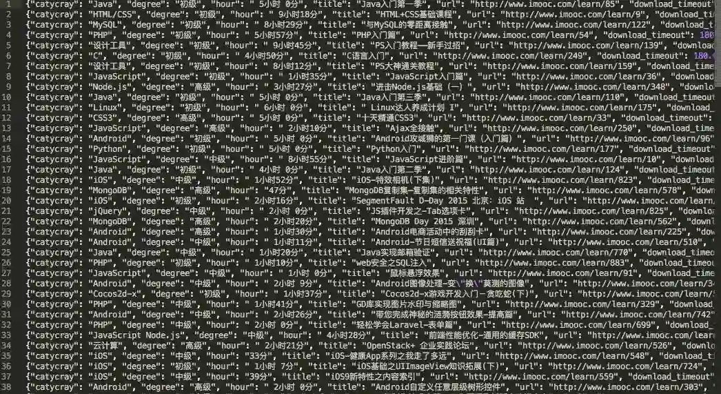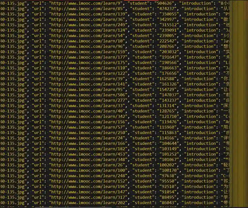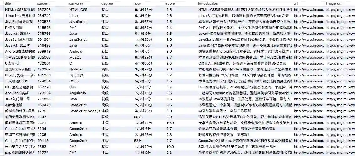 上面的处理结束后我们就成功的抓取了慕课网的全部课程信息了。