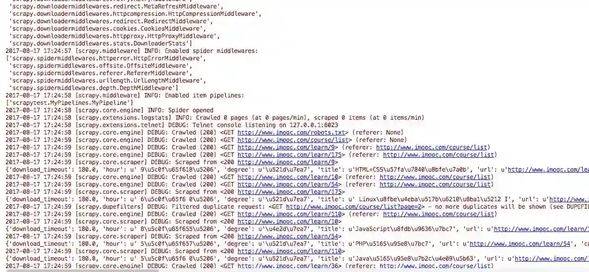 在执行完以上步骤之后,我们可以运行一下爬虫,看看是否出错。